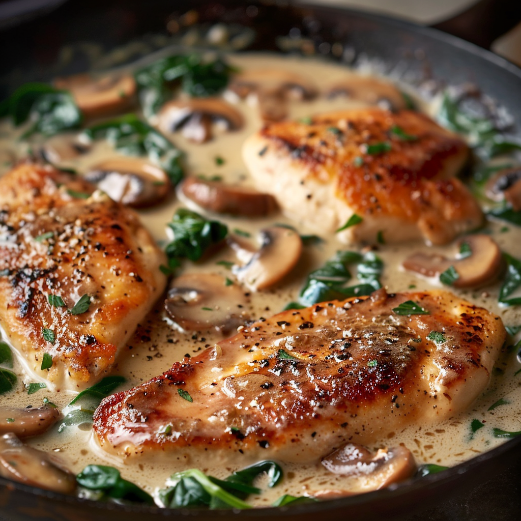 What makes this recipe truly special is its perfect balance. The creamy sauce is luscious without being heavy, the mushrooms add deep savory flavor, and the spinach brings freshness and color that keeps every bite satisfying. Best of all, everything comes together in one skillet, making it ideal for busy weeknights when you want maximum flavor with minimal cleanup.