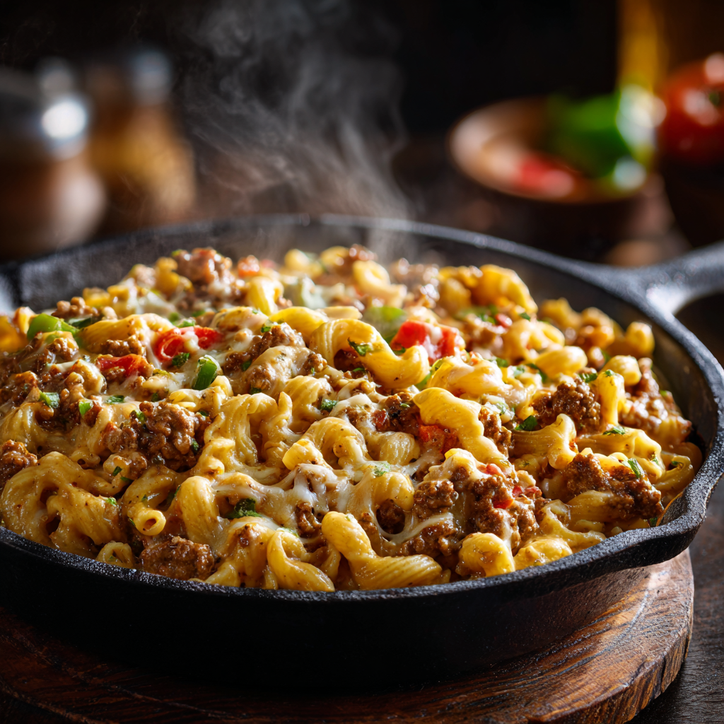 What makes this recipe so appealing is its simplicity paired with big flavor. Savory seasoned meat, tender pasta, rich tomato undertones, and melted cheese all cook together in one pot, allowing the flavors to blend seamlessly. The result is a dish that feels indulgent and cozy without requiring hours in the kitchen or a sink full of dishes.