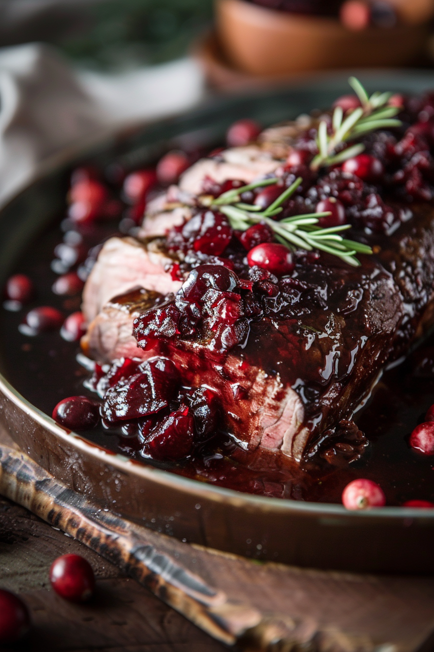 Thyme or rosemary add subtle earthiness that complements both the beef and cranberries.